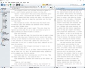 I write using Scrivener and I don’t know how I’d live without it now. This particular setup has the chapter notes on the right while I write the actual chapter on the left. This makes it super easy to refer to my notes while writing because they’re literally right there.